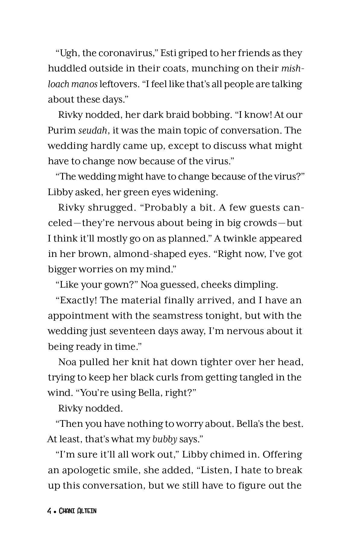 Esti’s whole life revolves around her circle of friends. But when Covid hits, her social life looks like it’s going to come to a terrible, crashing halt. Forced to spend a lot more time with her family, Esti doesn’t expect it to go well. But like everyone living through Covid, she discovers that life is full of surprises ...