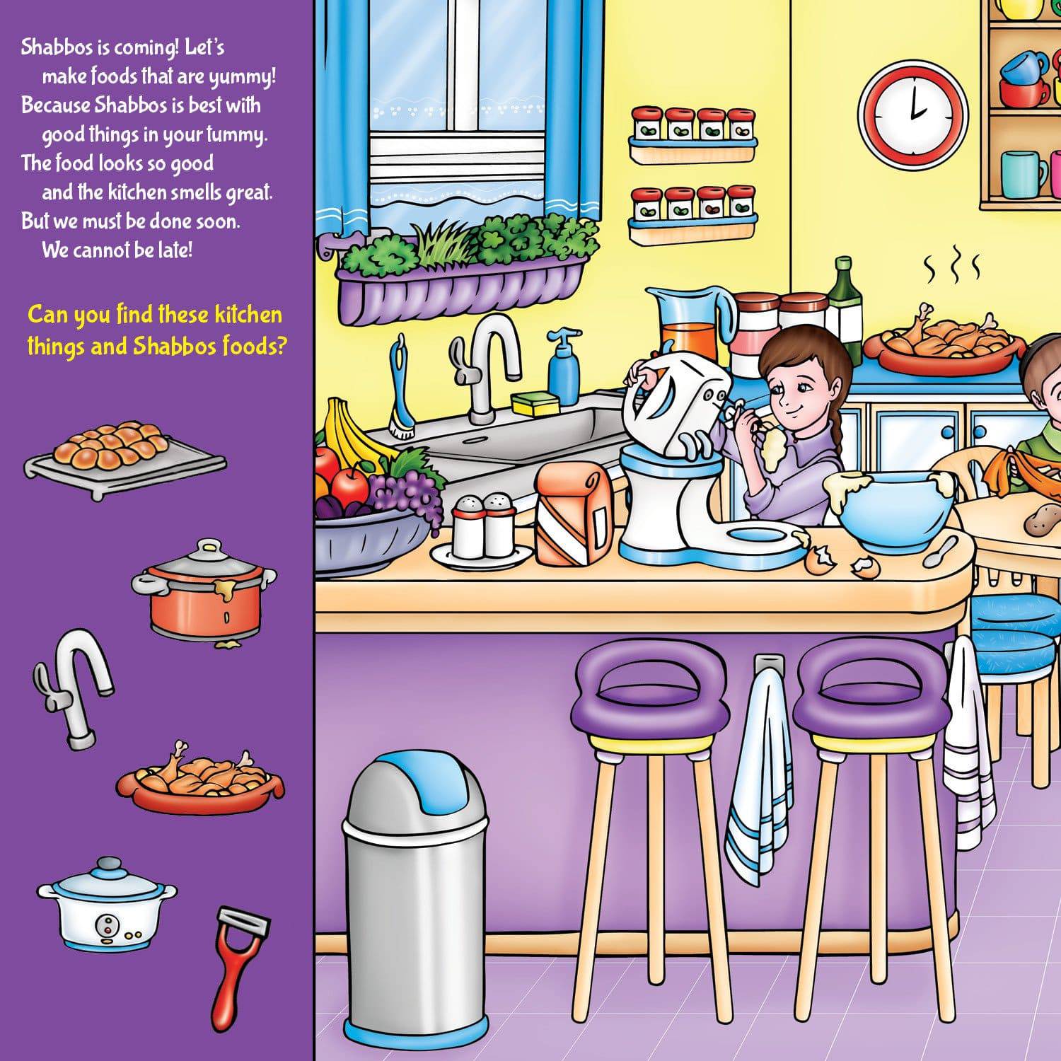 Simple picture clues and gentle rhymes take your toddler or preschooler on a delightful journey through Shabbos!
