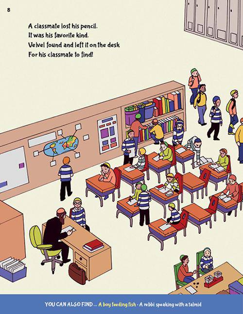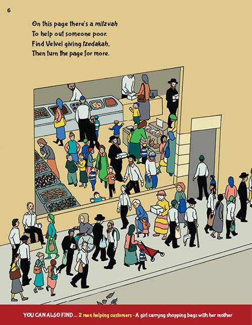 But he doesn’t want you to see! Velvel knows that the best way to do mitzvos is quietly, without showing off. Can you find all of Velvel’s hidden mitzvos?