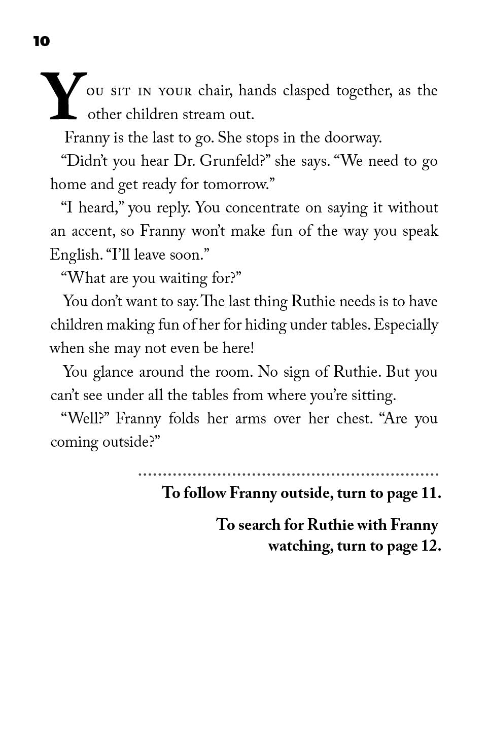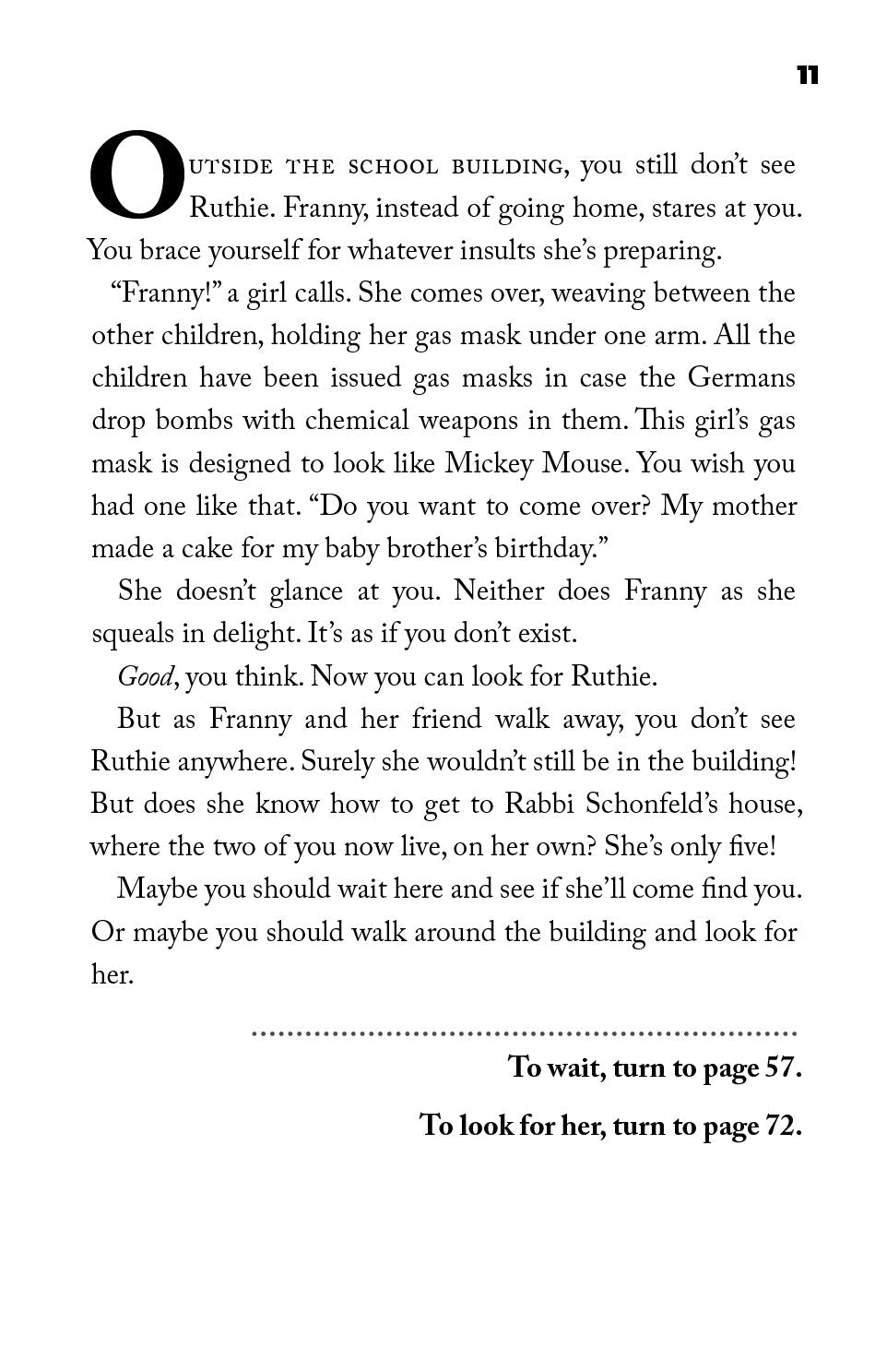 In this book, you, the reader, are the main character — and you make the decisions. You are a Jewish girl during World War II who escaped to England with your little sister. Now, you have just been told that your whole school must flee to the countryside, but your sister is nowhere to be found.