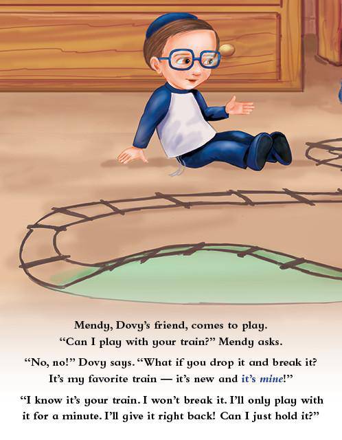 In this third book of the LITE Boy series, Dovy gets a new train that he simply loves playing with, and -- not surprisingly -- finds it so hard to share with his friend Mendy!