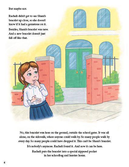 When Racheli finds a beautiful bracelet lying on the ground near her school, she really wants to keep it for herself. But when she hears the story of what Rabi Chanina ben Dosa and his wife did when they found someone's lost chickens, she starts thinking a bit differently ...