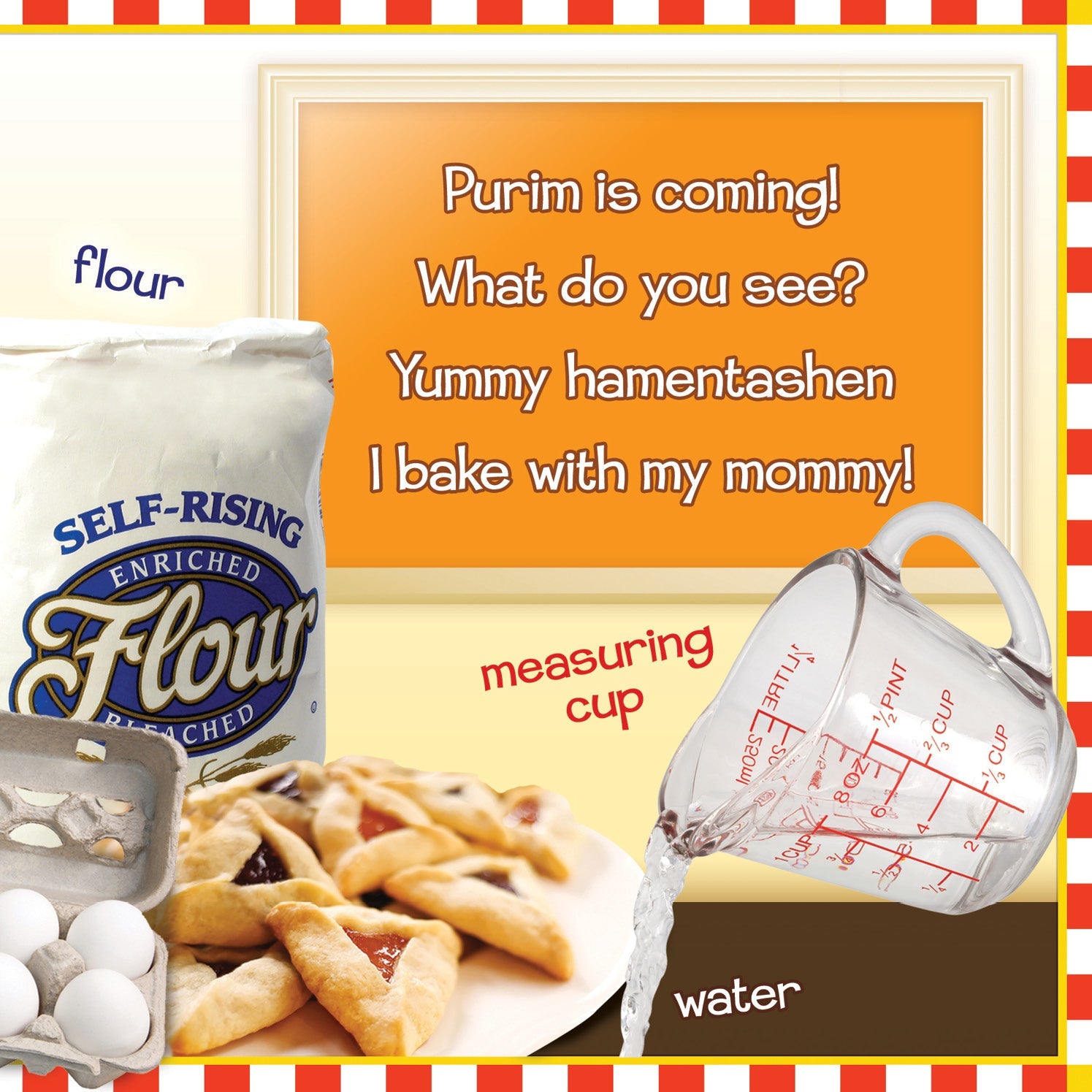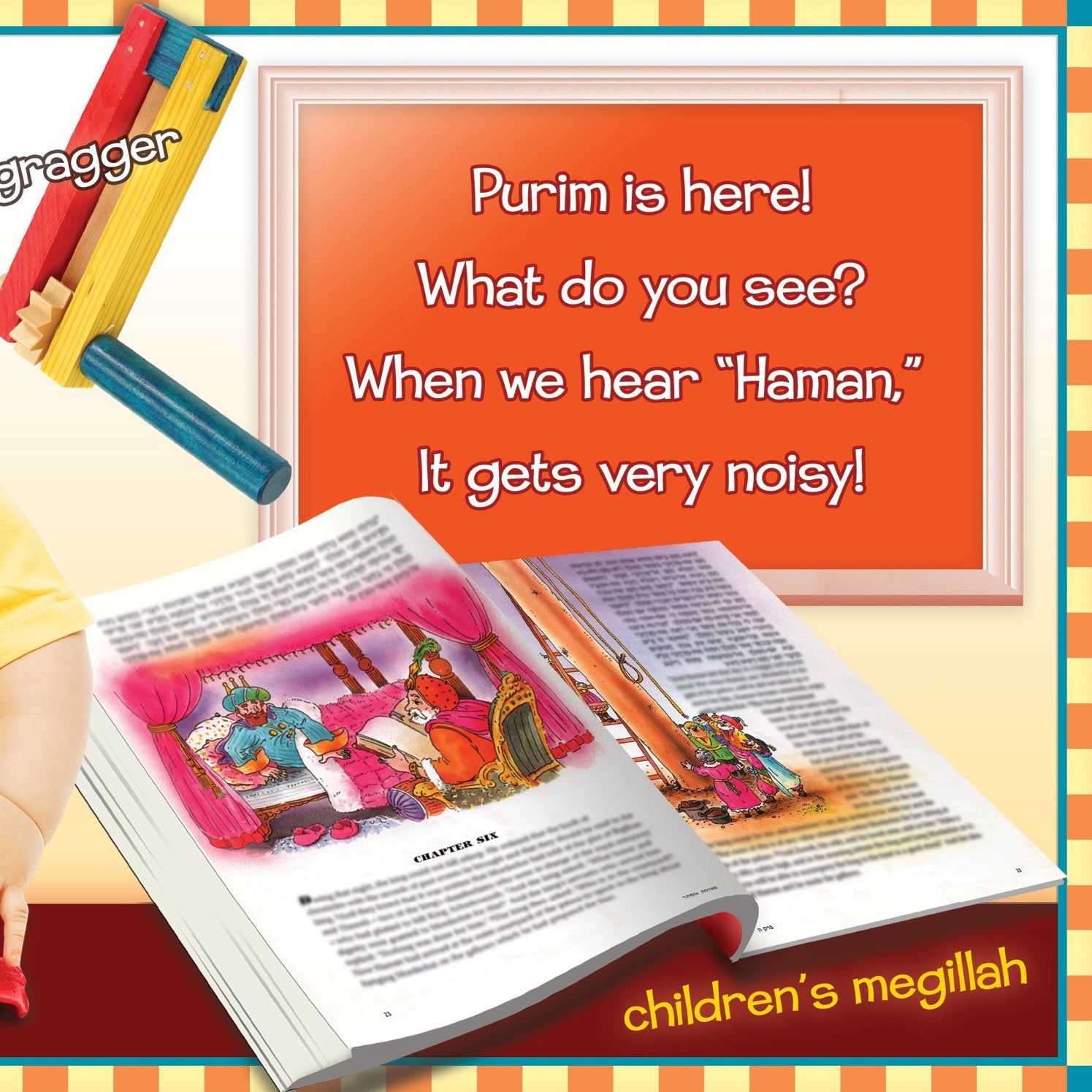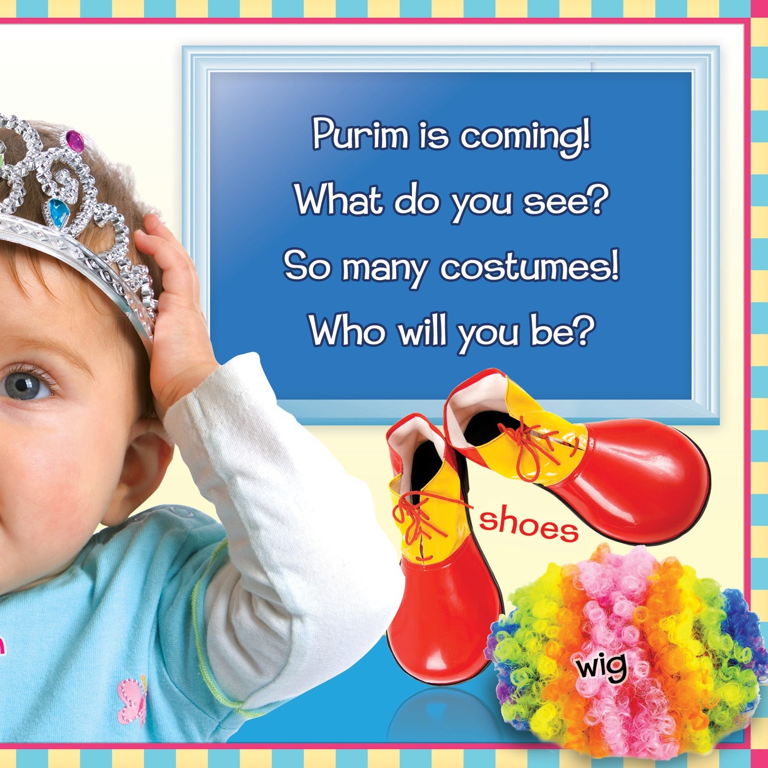 Teach your toddler about the holiday of Purim with this bright and colorful word-and-picture book! Children will learn basic vocabulary while becoming familiar with the objects and concepts that are unique to this special holiday.