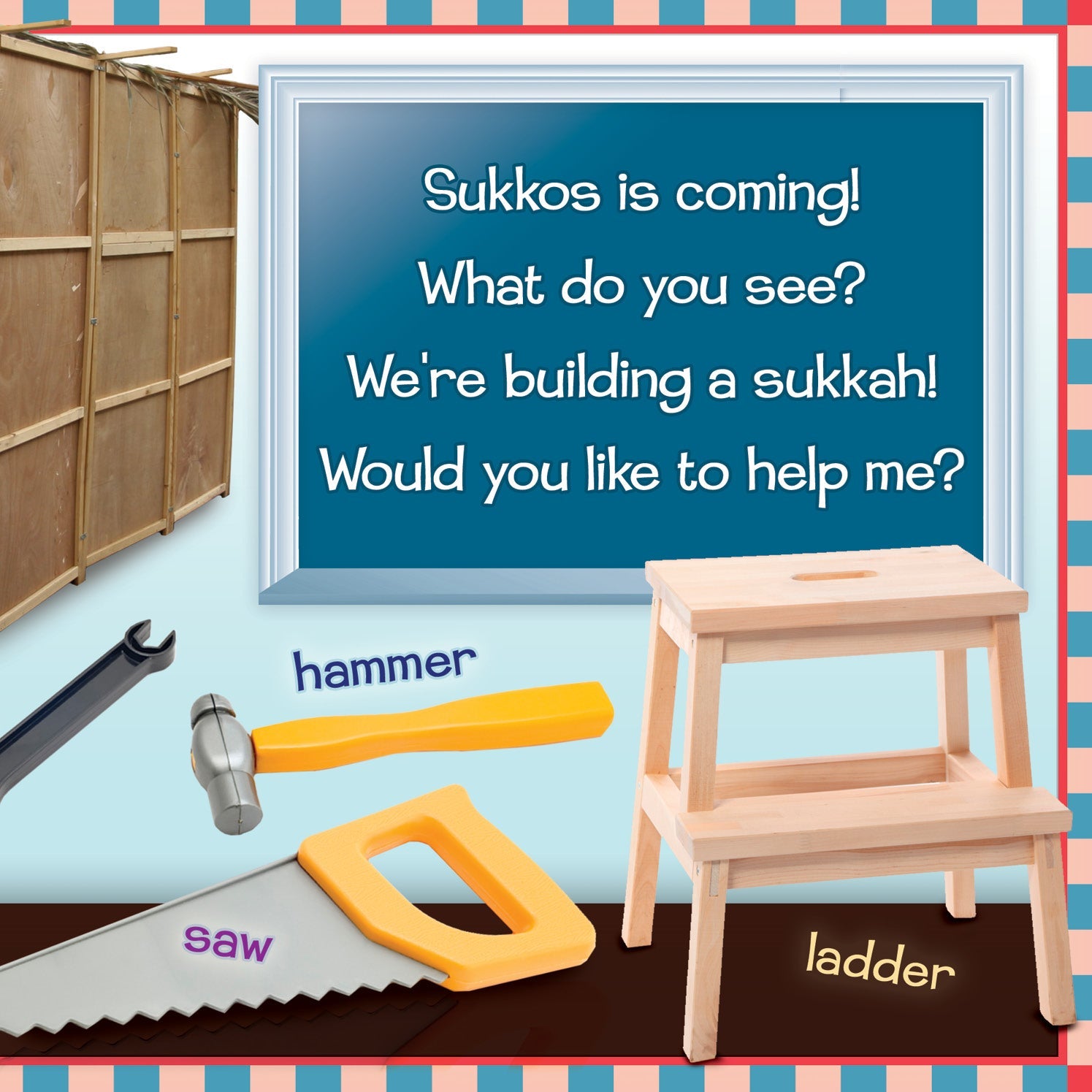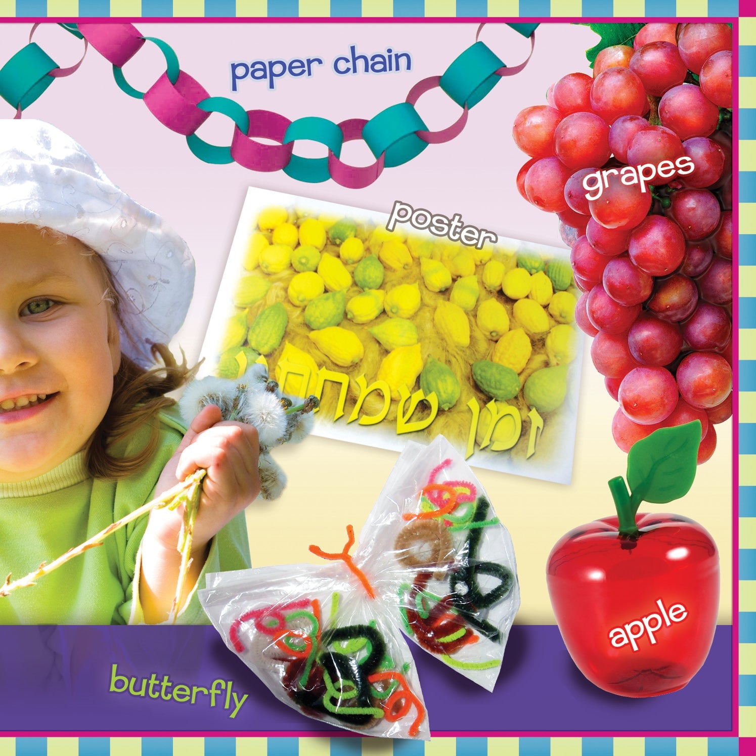 Teach your toddler about the holiday of Sukkos with this bright and colorful word-and-picture book! Children will learn basic vocabulary while becoming familiar with the objects and concepts that are unique to this special holiday.