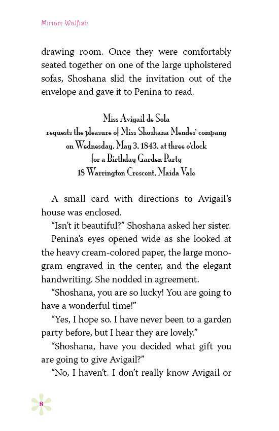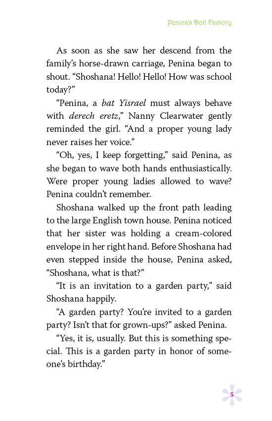 Meet Penina Mendes, a Jewish girl growing up in London, England, in the 1840s. Descended from Jews who fled from Spain in 1492, Penina comes from a wealthy family that is well-known for its tradition of community chesed. Penina is clever and energetic and is just starting to learn about the world around her. Now you can learn about her world, too!