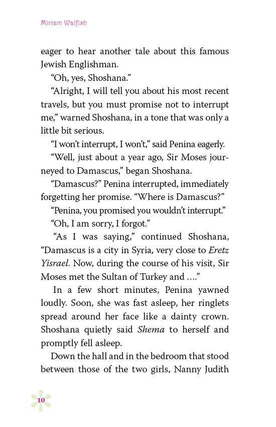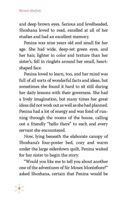 Meet Penina Mendes, a Jewish girl growing up in London, England, in the 1840s. Descended from Jews who fled from Spain in 1492, Penina is raised in luxury and cared for by her devoted nanny. Penina is clever and energetic and is just starting to learn about the world around her. Now you can learn about her world, too!
