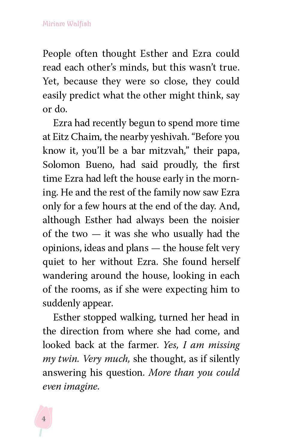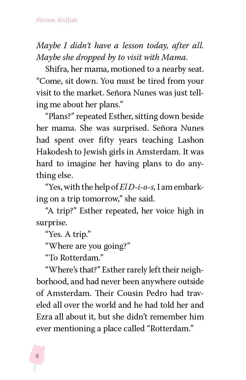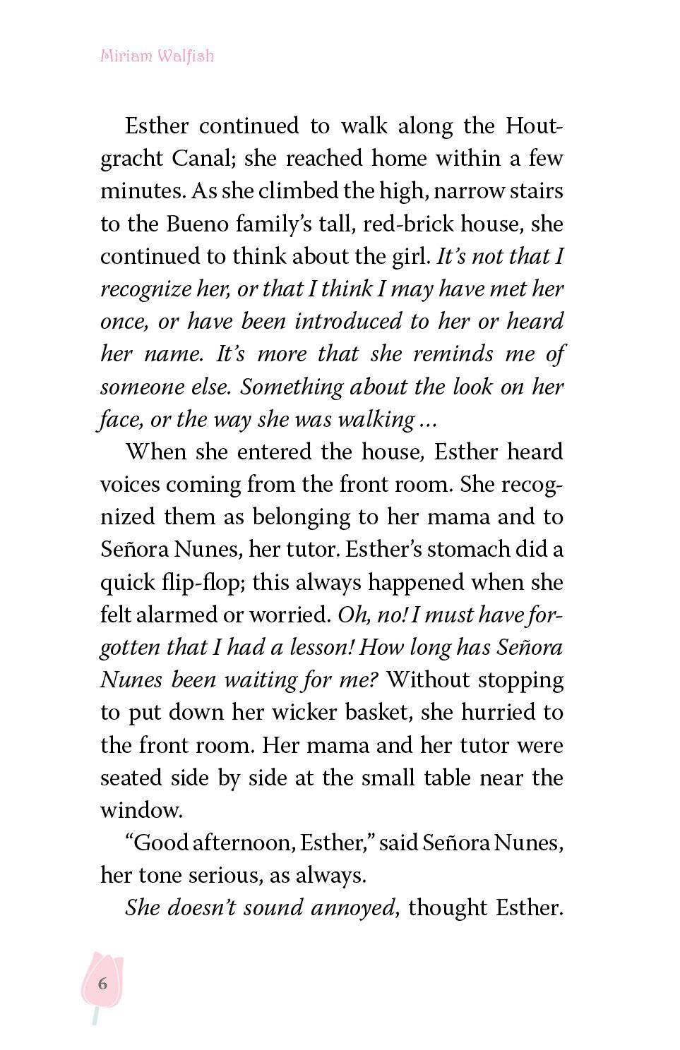 Meet Esther Bueno, a Jewish girl growing up in the 1670s with her twin brother, Ezra. Their parents fled Portugal when they themselves were children in order to escape the Inquisition. Now the Bueno family lives in Amsterdam -- one of the busiest, most exciting cities in all of Europe. Read about the Bueno twins and share their adventures!