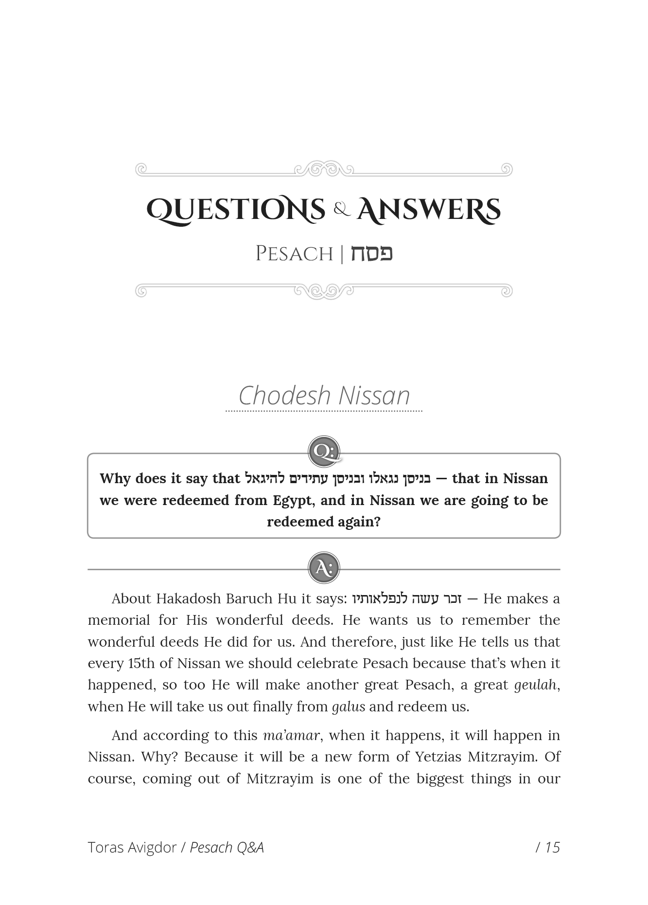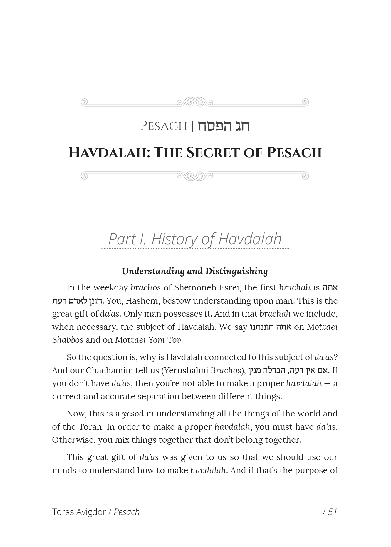 Covering the months of Nissan through Av — Pesach through Chamishah Asar B'Av.
