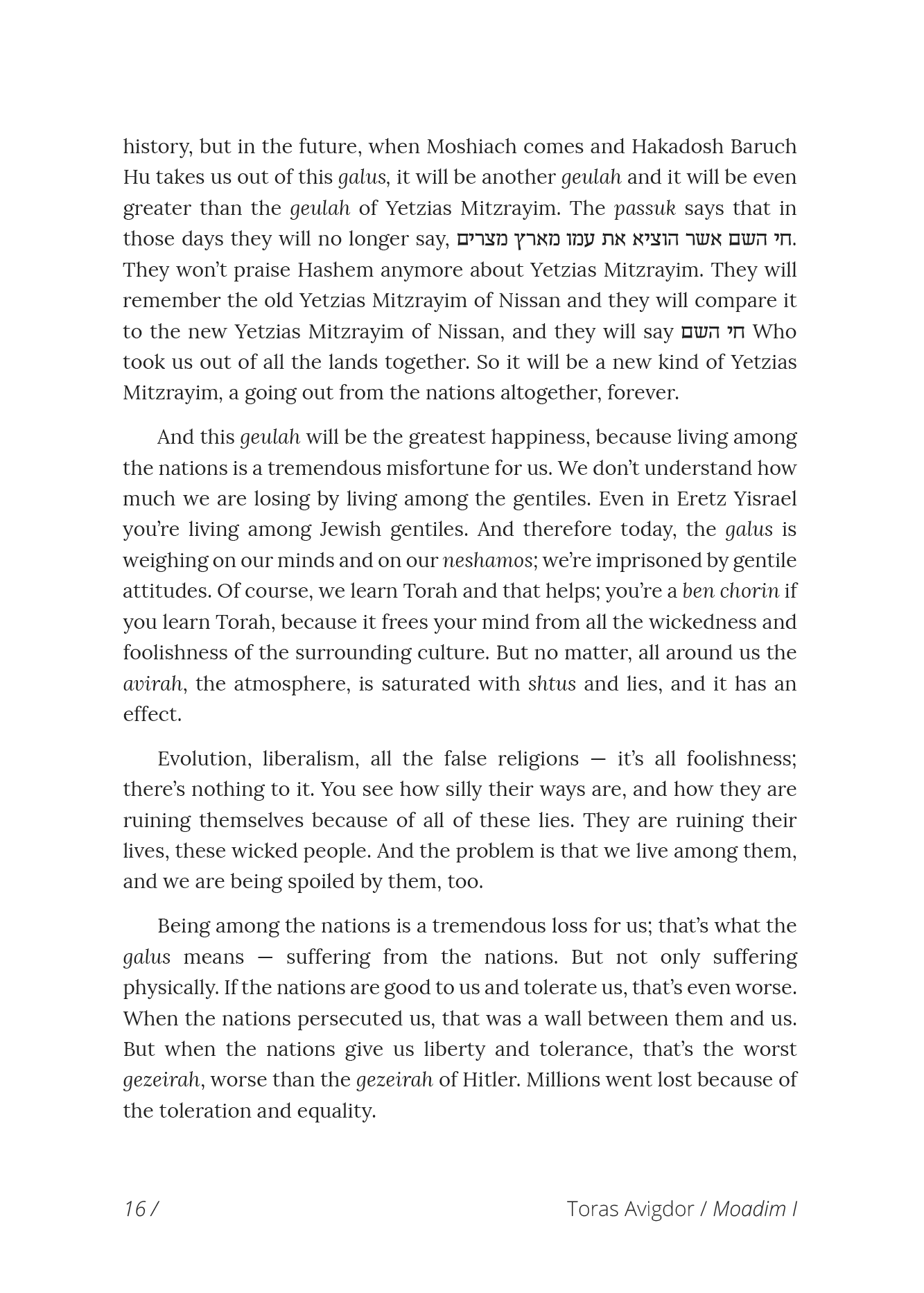 Now Toras Avigdor on the Moadim is available in book form, and it will surely become a treasured part of your library.